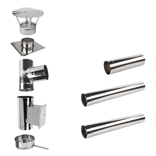 Edelstahlschornstein Bausätze Konfigurator Einwandig - Ø120 mm , Ø130 mm , Ø150 mm , Ø160 mm , Ø180 mm , Ø200 mm - V4A - 25 Jahre Garantie