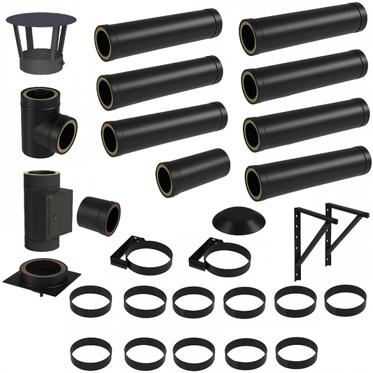 DW BLACK V2A Bausatz Doppelwandig Ø130 Höhe 9,7 m mit Regenhaube - Jeremias DW-Black