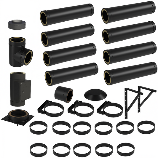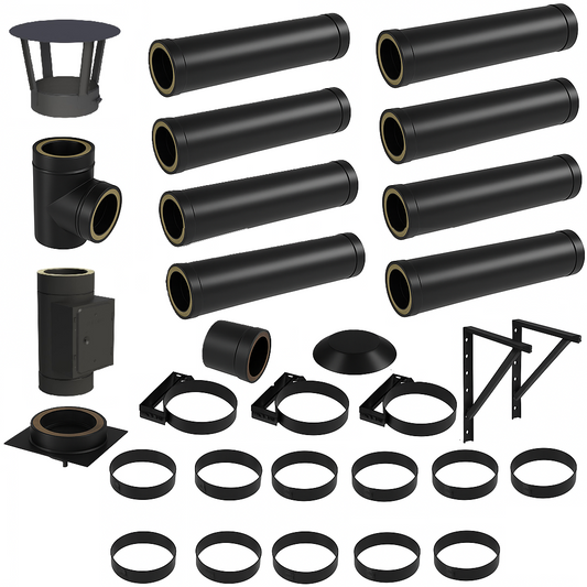 DW BLACK V2A Bausatz Doppelwandig Ø130 Höhe 8,7 m mit Regenhaube - Jeremias DW-Black