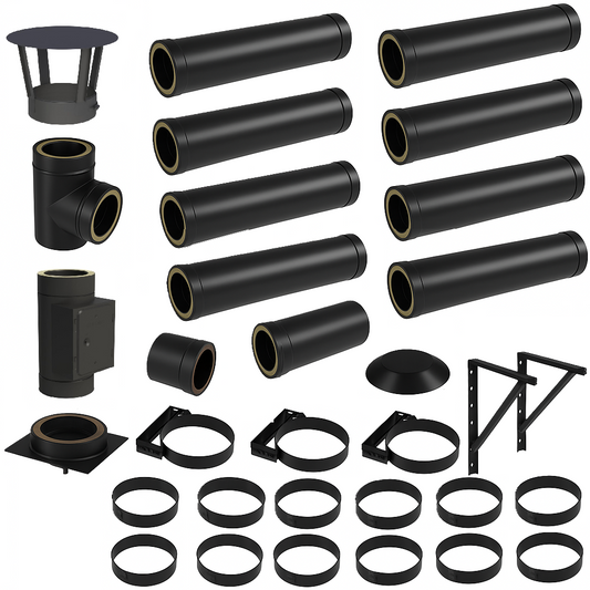 DW BLACK V2A Bausatz Doppelwandig Ø150 Höhe 9,7 m mit Regenhaube - Jeremias DW-Black
