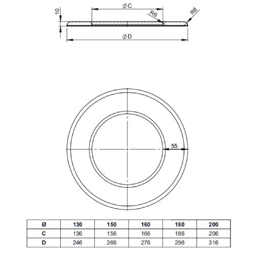 Lüftungsgitter "LOFT" in Edelstahl ohne Lamellen 220x220