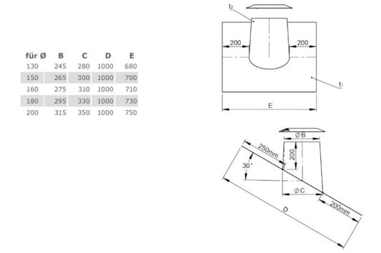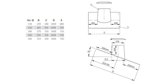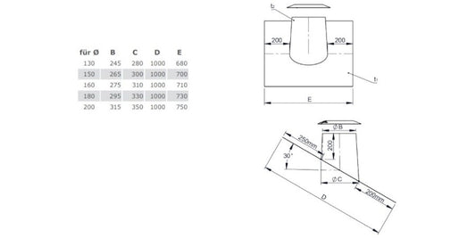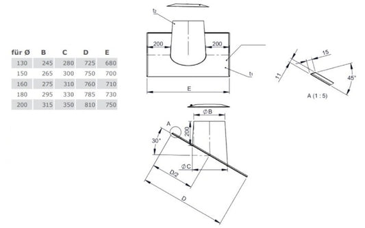 Edelstahl DW Dachdurchführung 26°- 35° mit Wetterkragen Ø180 mm - V2A - DW-ECO 2.0 Jeremias