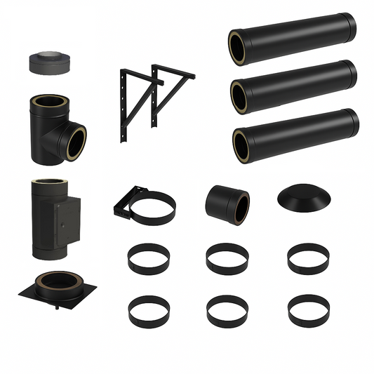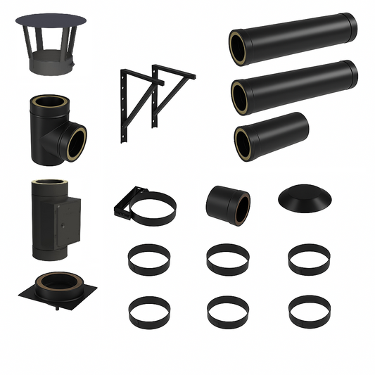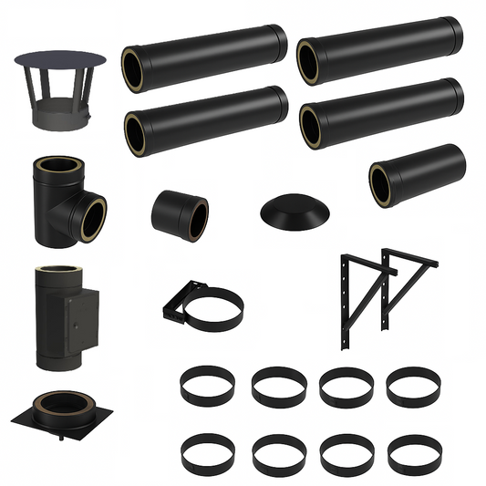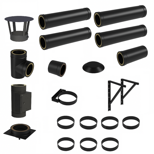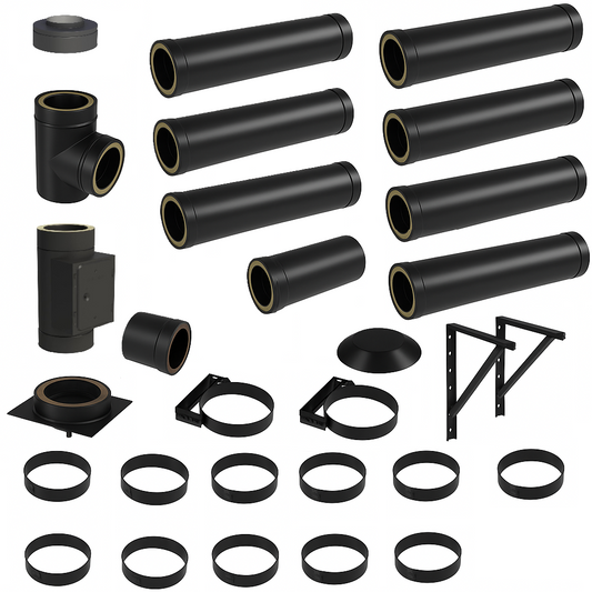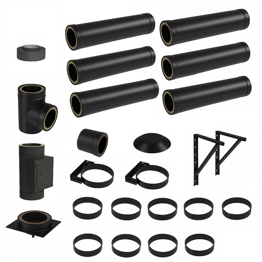 DW BLACK V2A Bausatz Doppelwandig Ø150 Höhe 6,7 m mit Regenhaube - Jeremias DW-Black