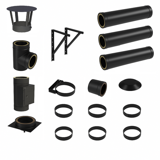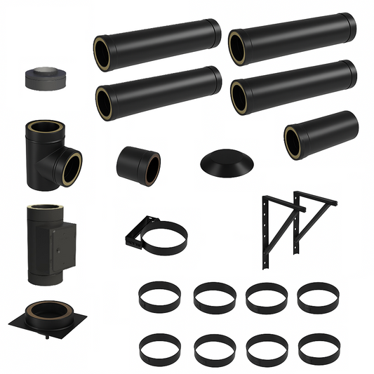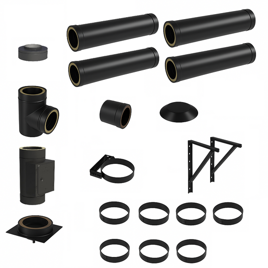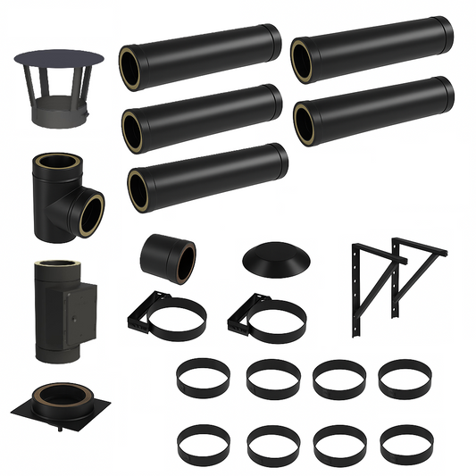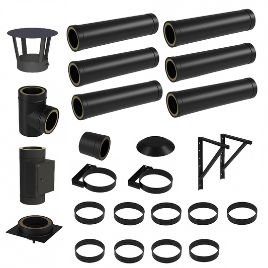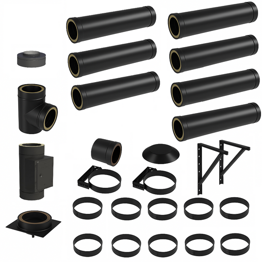DW BLACK V2A Bausatz Doppelwandig Ø180 Höhe 6,7 m mit Regenhaube - Jeremias DW-Black
