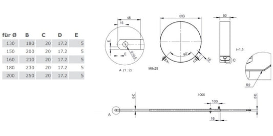 Edelstahlschornstein Rohr Lange 1000 mm mit Wandfutter kürzbar Ø180 mm - V2A - DW-ECO 2.0 Jeremias