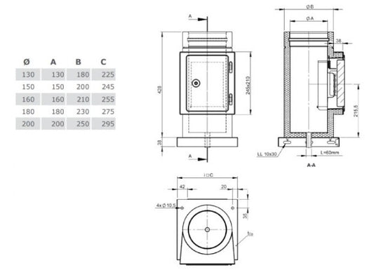 Edelstahlschornstein Längenelement mit Revision (nur für Verbindungsleitung) Ø180 mm - V2A - DW-ECO 2.0 Jeremias
