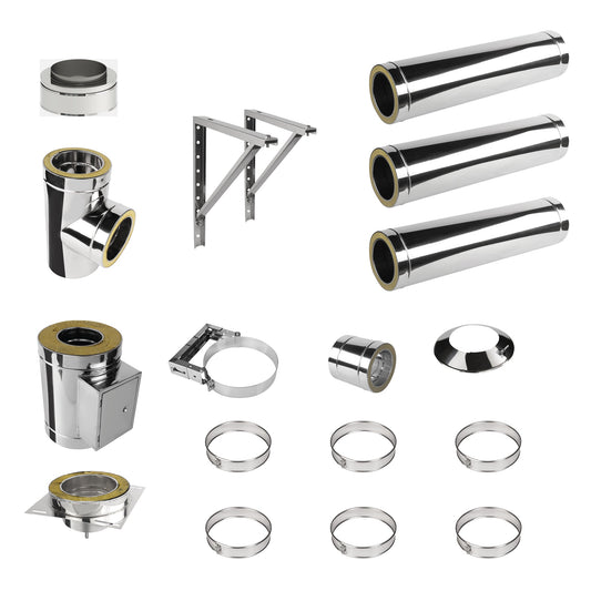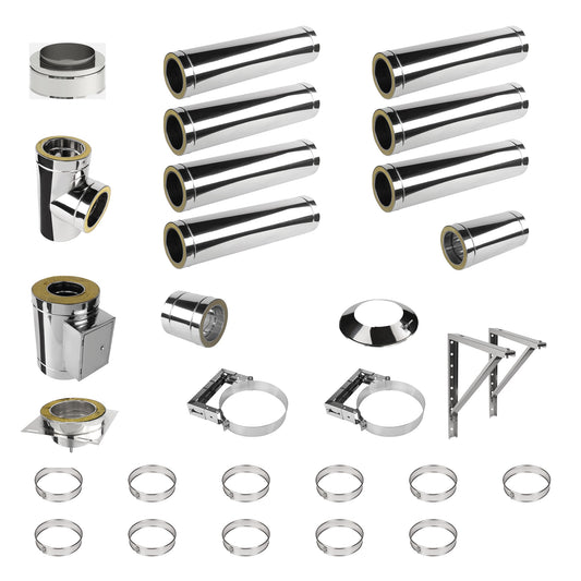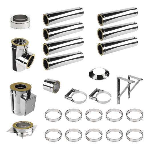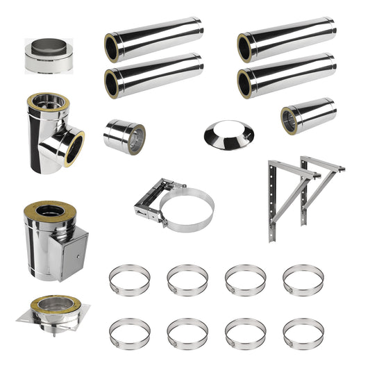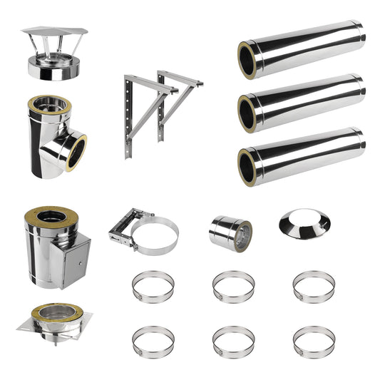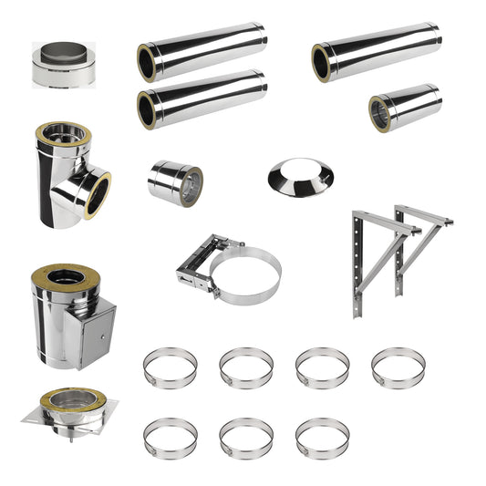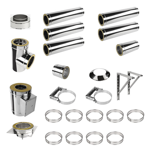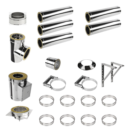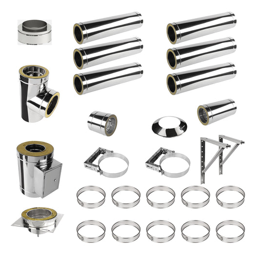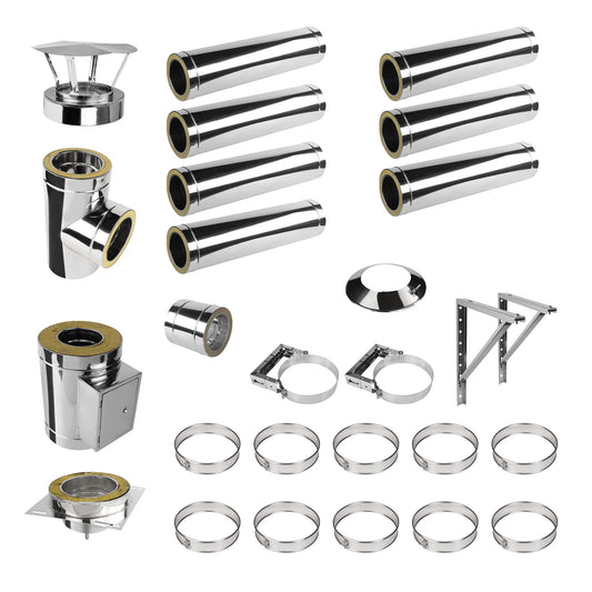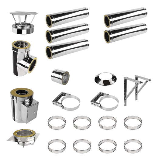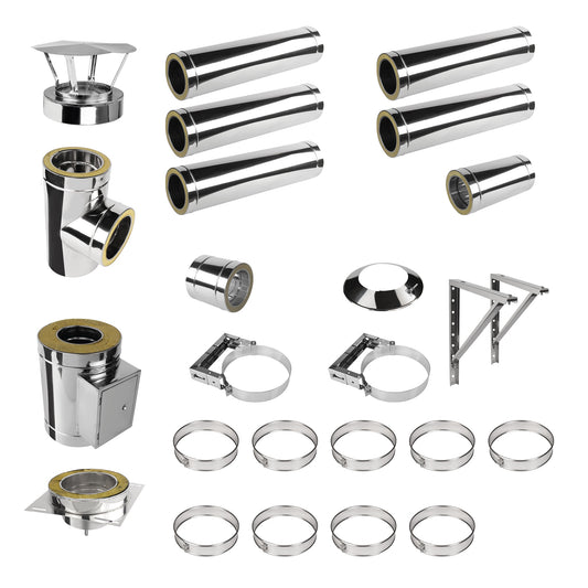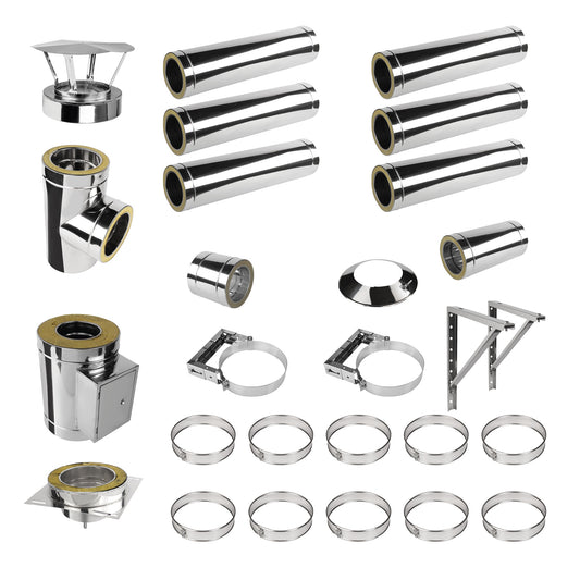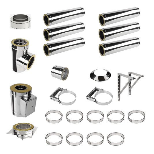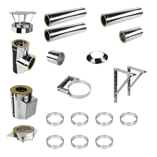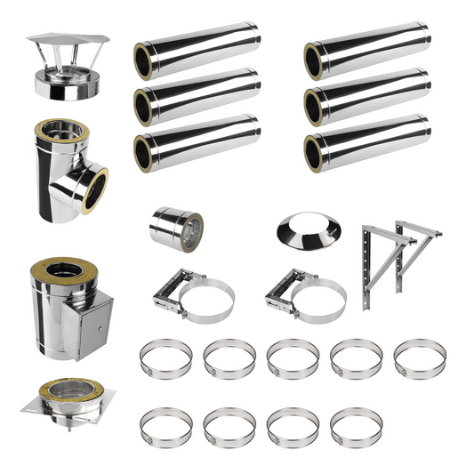 Edelstahlschornstein V2A Bausatz Doppelwandig Ø180 Höhe 6,2 m mit Mündungsabschluss -Jeremias DW-ECO 2.0