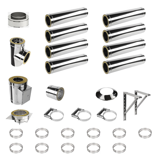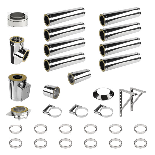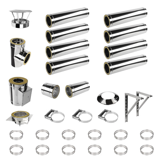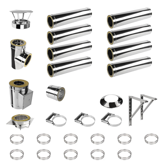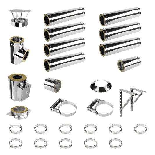 Edelstahlschornstein V2A Bausatz Doppelwandig Ø180 9,2 m mit Mündungsabschluss - Jeremias DW-ECO 2.0