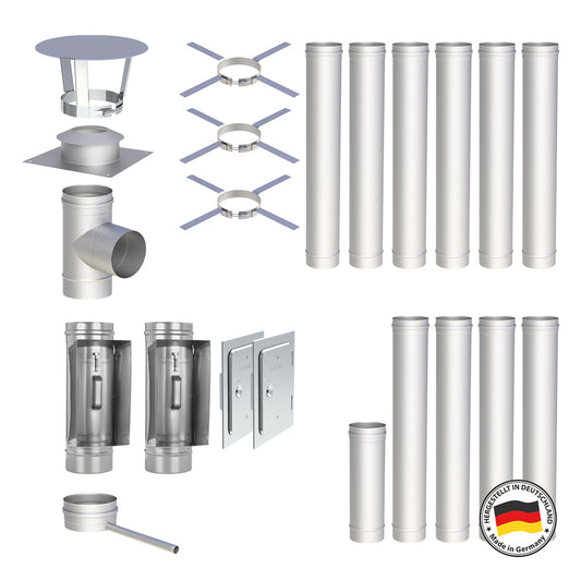 Edelstahlschornstein Bausatz Einwandig 12,9 m - Ø130 mm - 0,6 mm - V4A, V2A - Sanierungsbausatz einwandig Abgasrohr Sanierung EW-FU Jeremias