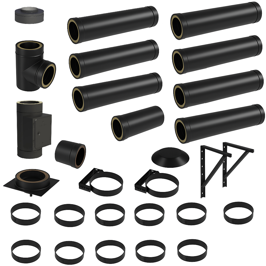DW BLACK V2A Bausatz Doppelwandig Ø130 Höhe 8,7 m mit Mündungsabschluss - Jeremias DW-Black