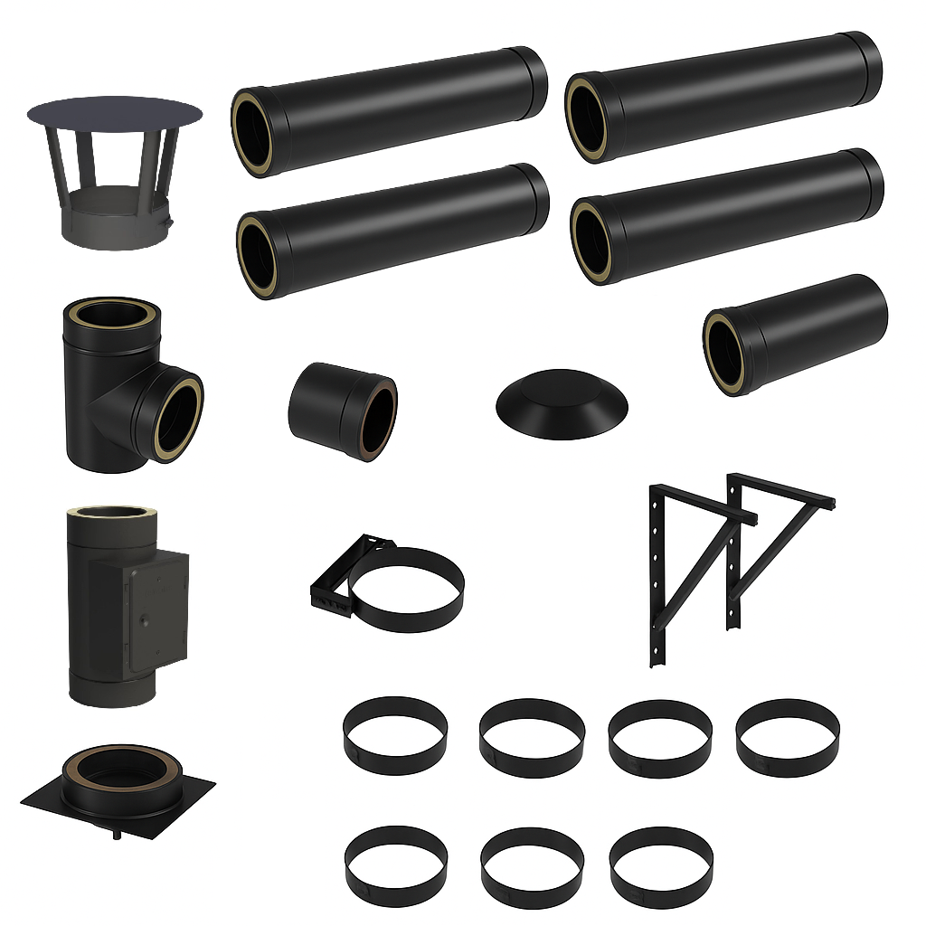 DW BLACK V2A Bausatz Doppelwandig Ø150 Höhe 4,7 m mit Regenhaube - Jeremias DW-Black