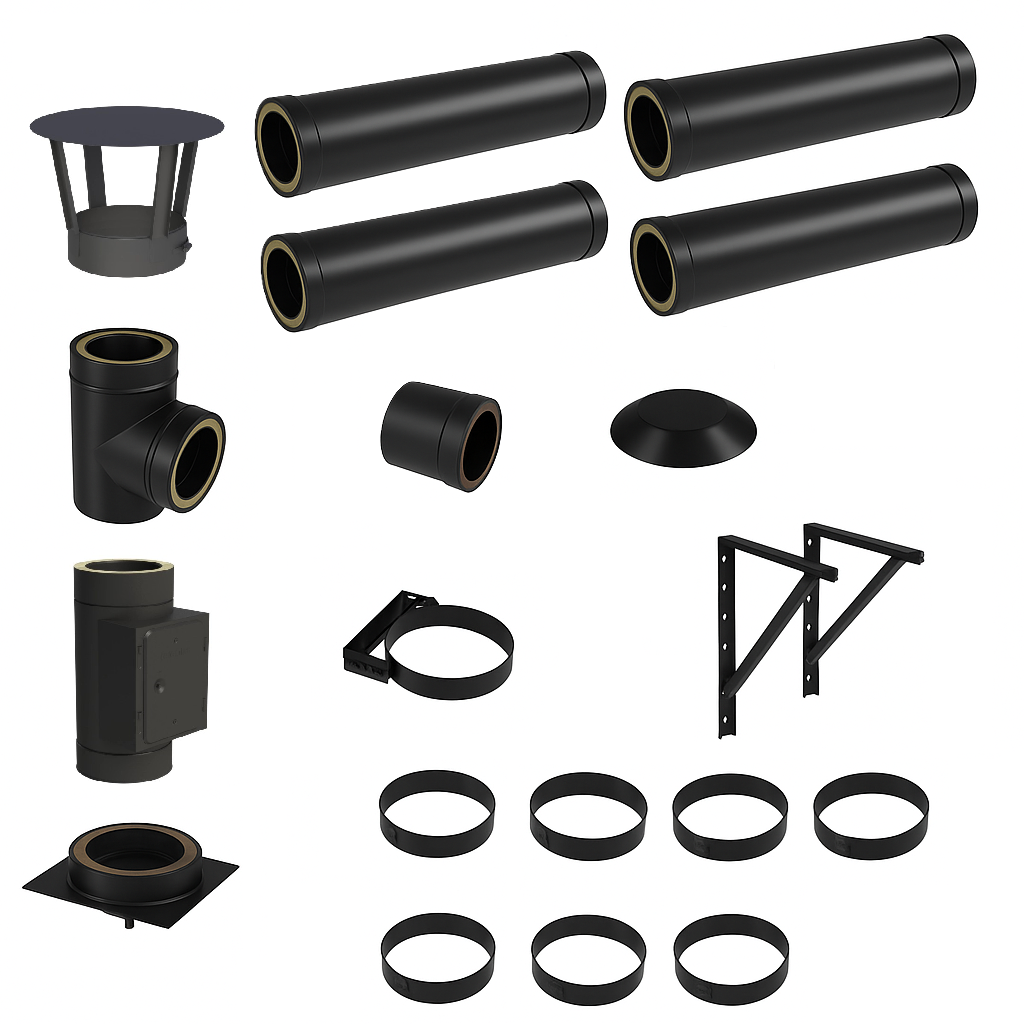 DW BLACK V2A Bausatz Doppelwandig Ø150 Höhe 5,2 m mit Regenhaube - Jeremias DW-Black