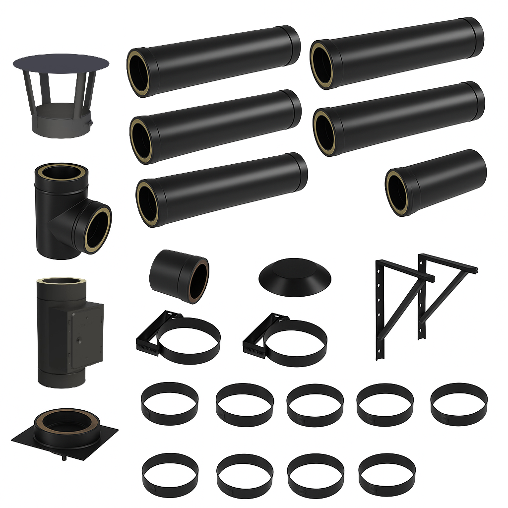 DW BLACK V2A Bausatz Doppelwandig Ø150 Höhe 6,7 m mit Regenhaube - Jeremias DW-Black
