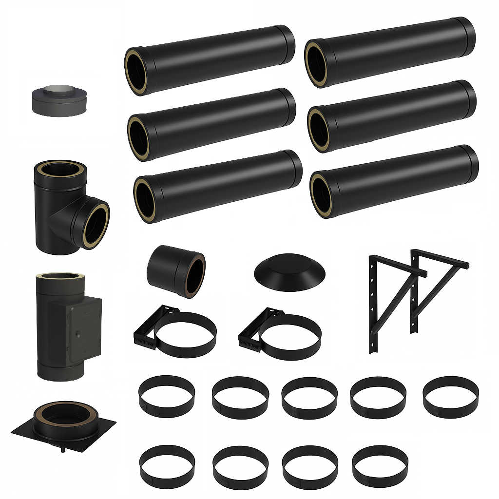 DW BLACK V2A Bausatz Doppelwandig Ø150 Höhe 7,2 m DW mit Mündungsabschluss - Jeremias DW-Black