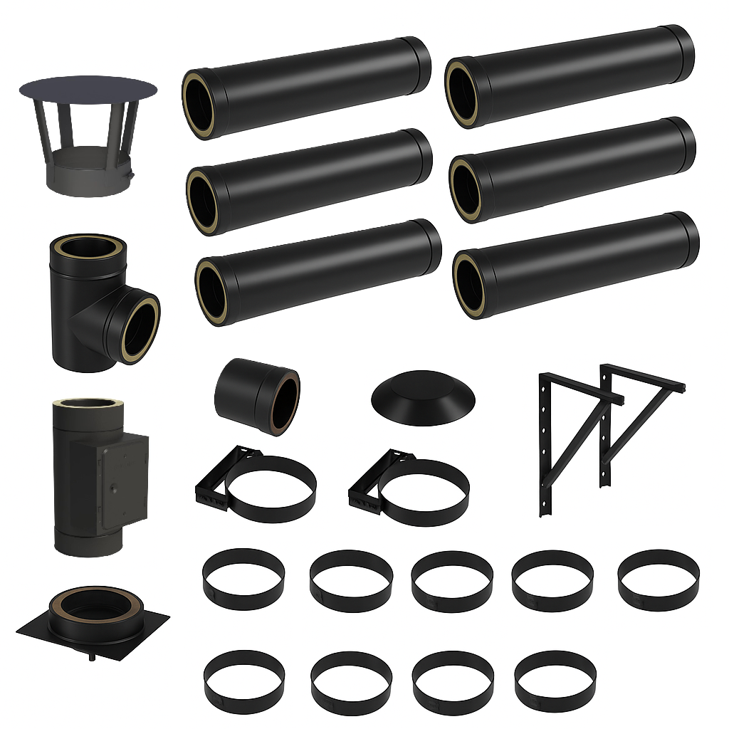 DW BLACK V2A Bausatz Doppelwandig Ø150 Höhe 7,2 m mit Regenhaube - Jeremias DW-Black