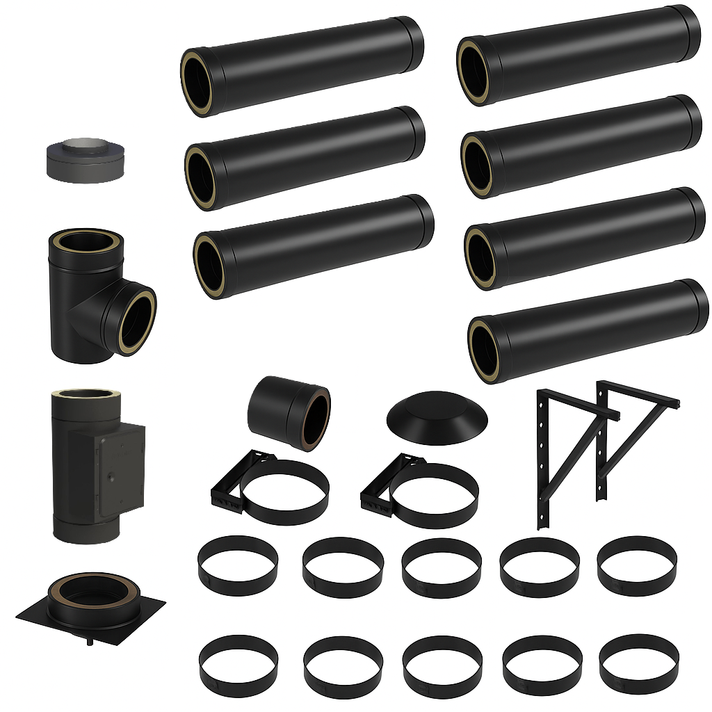 DW BLACK V2A Bausatz Doppelwandig Ø150 Höhe 8,2 m mit Mündungsabschluss - Jeremias DW-Black