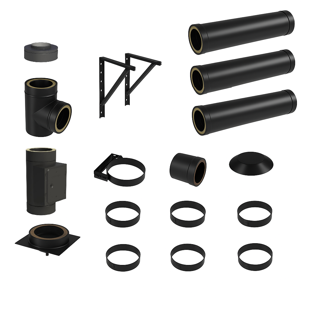 DW BLACK V2A Bausatz Doppelwandig Ø180 Höhe 4,2 m mit Mündungsabschluss - Jeremias DW-Black