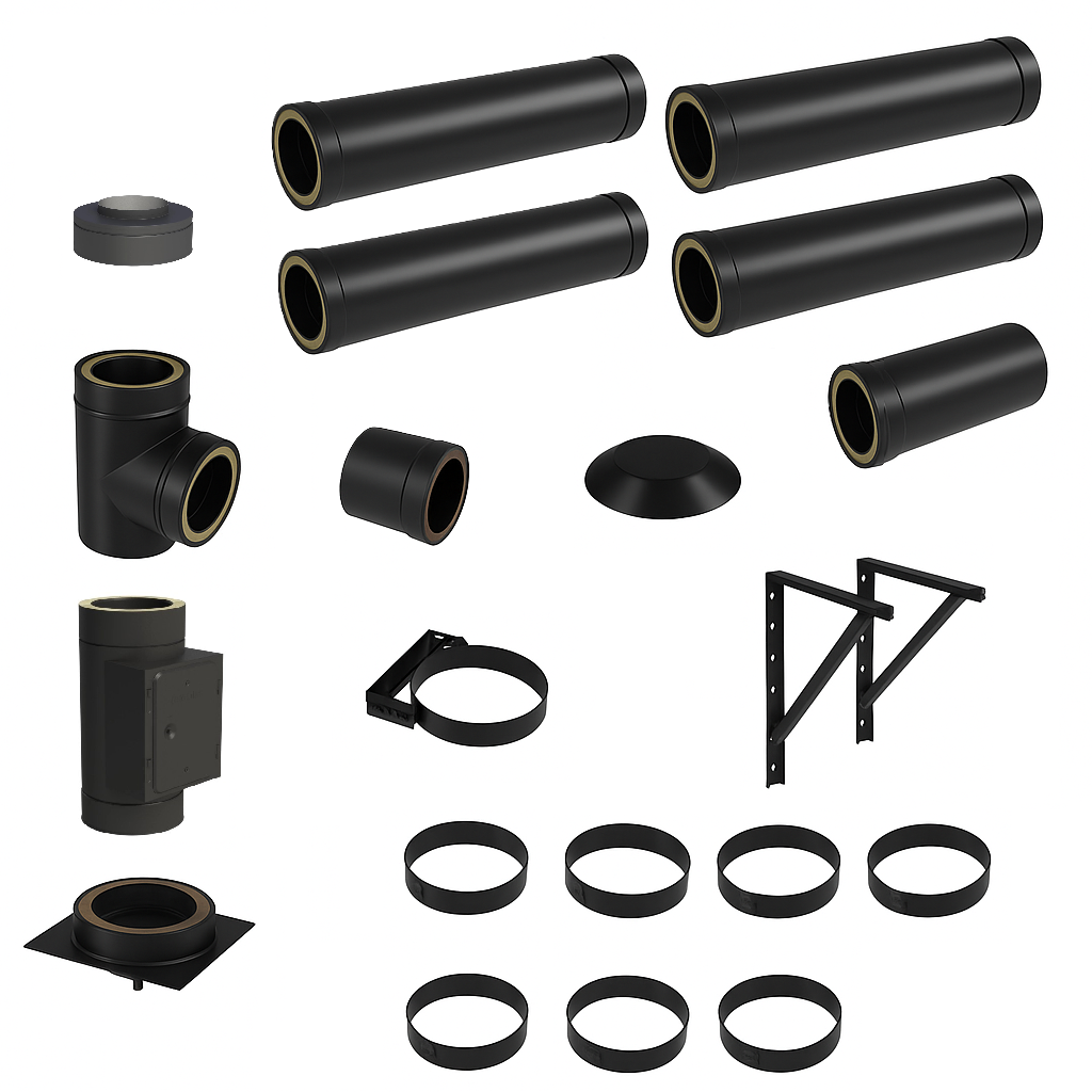 DW BLACK V2A Bausatz Doppelwandig Ø180 Höhe 4,7 m mit Mündungsabschluss - Jeremias DW-Black