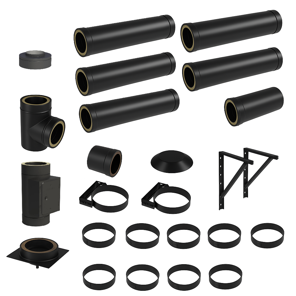 DW BLACK V2A Bausatz Doppelwandig Ø180 Höhe 6,7 m mit Mündungsabschluss - Jeremias DW-ECO 2.0