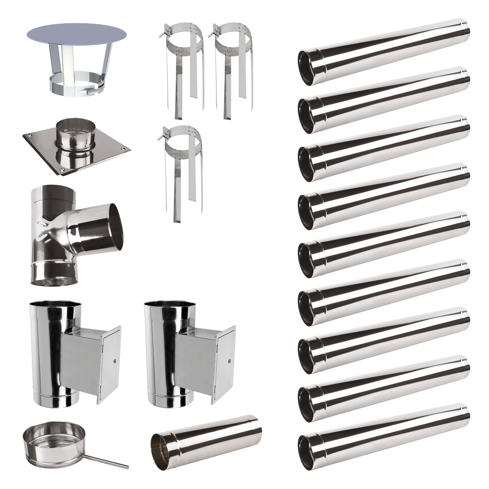 Edelstahlschornstein Bausatz Einwandig 10,9 m mit 2 Reinigungselementen - Ø200 mm - 0,6 mm Sanierungsbausatz einwandig Abgasrohr Sanierung