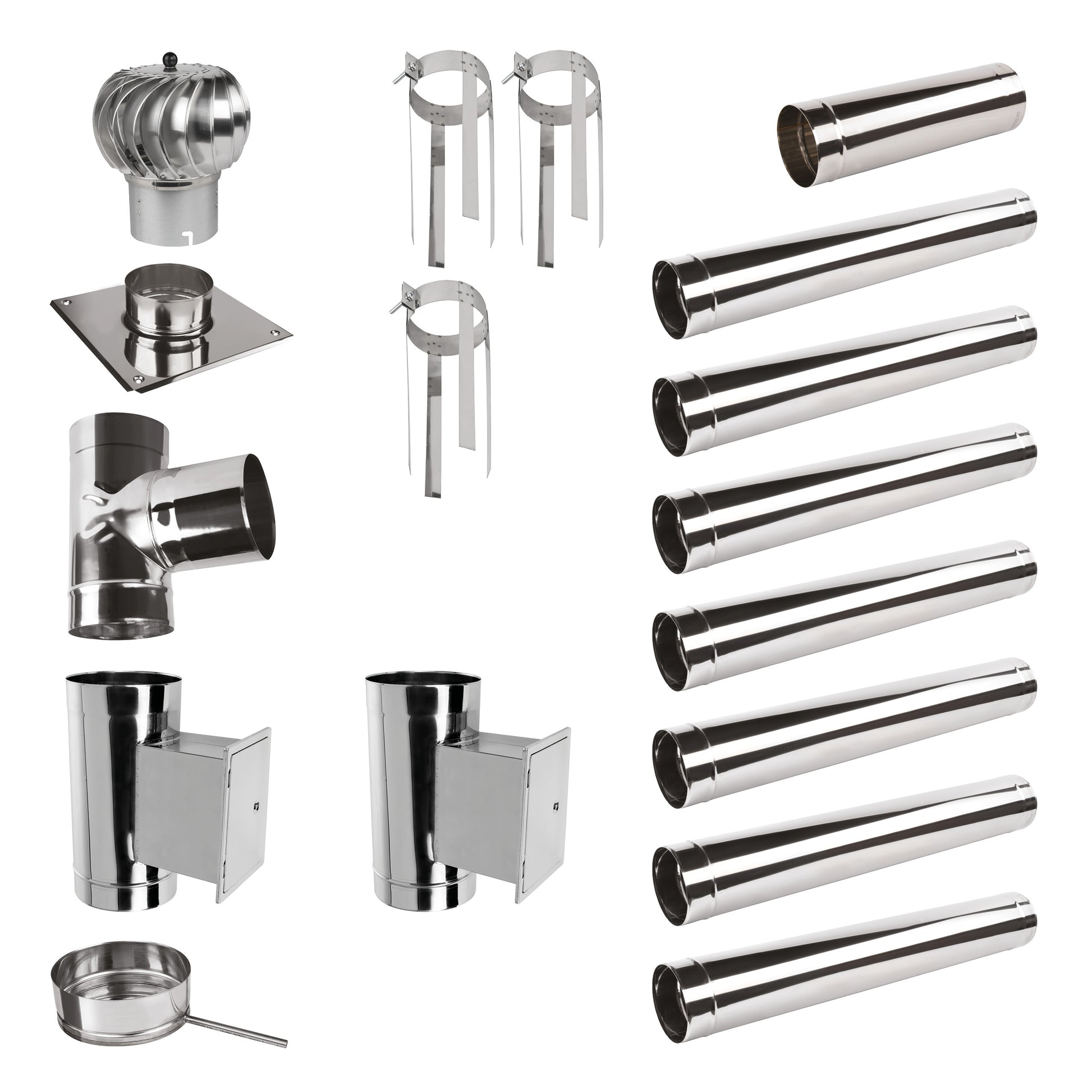 Edelstahlschornstein Bausatz Einwandig 8,9 m mit 2 Reinigungselement - Ø200 mm - 0,6 mm Sanierungsbausatz einwandig Abgasrohr Sanierung mit drehbarer Schornsteinaufsatz