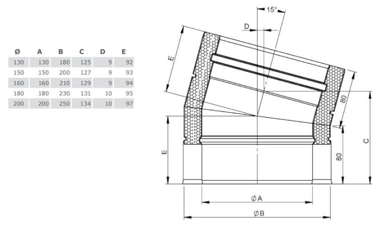 Edelstahlschornstein Bogen 15° starr Ø180 mm - V2A - DW-ECO 2.0 Jeremias